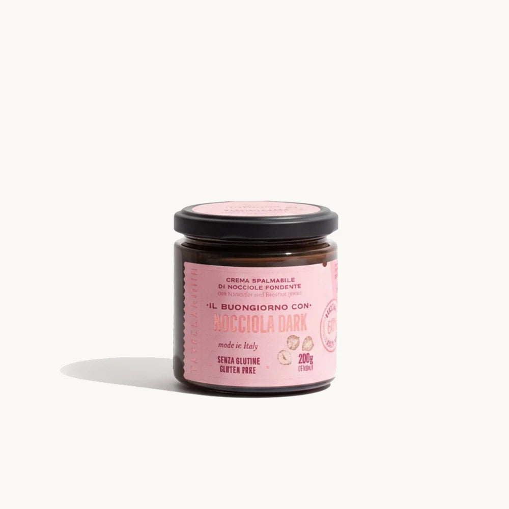 Nur 3 Zutaten: Die besten g.g.A.-Haselnüsse aus dem Piemont (55 %) auf Stein vermahlen, Rohrzucker und Kakao.